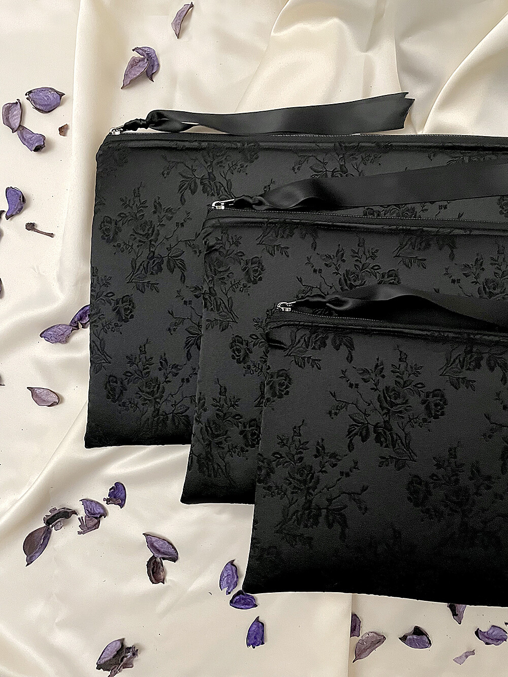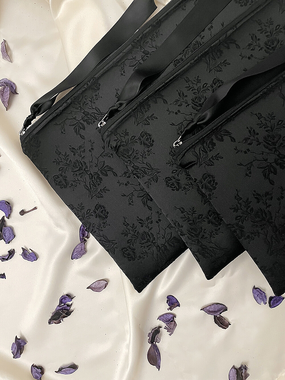 [ORDER] Rose Embroidery Satin Digital pouch (11"/13"/15")