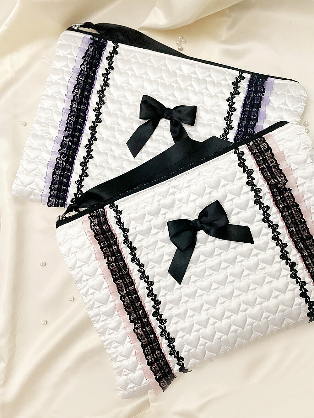 [ORDER] Double Lace Heart Satin Digital pouch (11"/13"/15")
