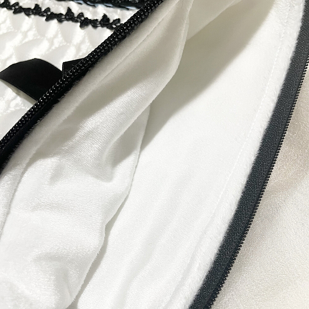 ✓ 블랙컬러 레이스와 오간자 소재의 컬러감 있는 레이스가 배합된 더블 레이스 장식 디테일