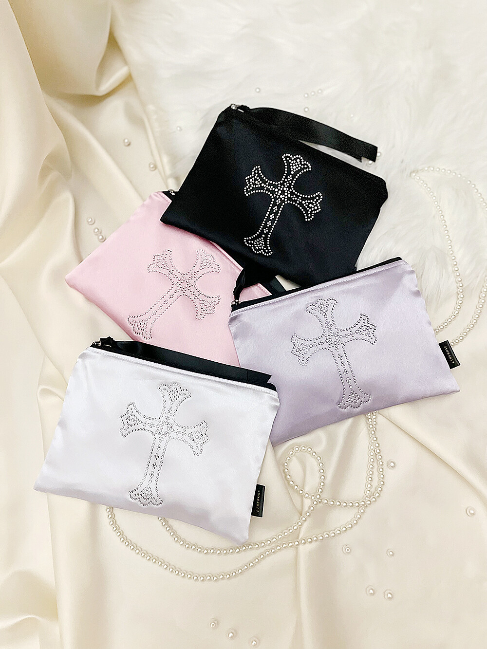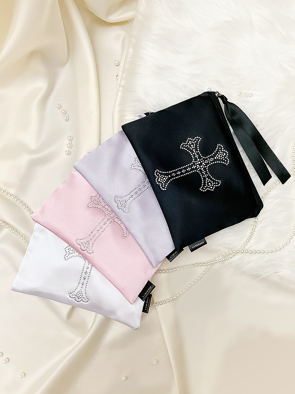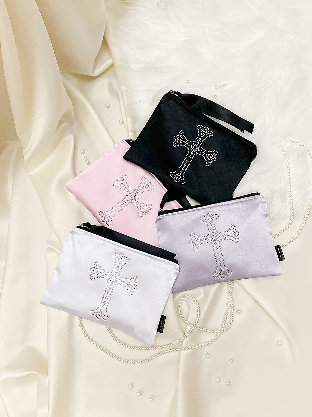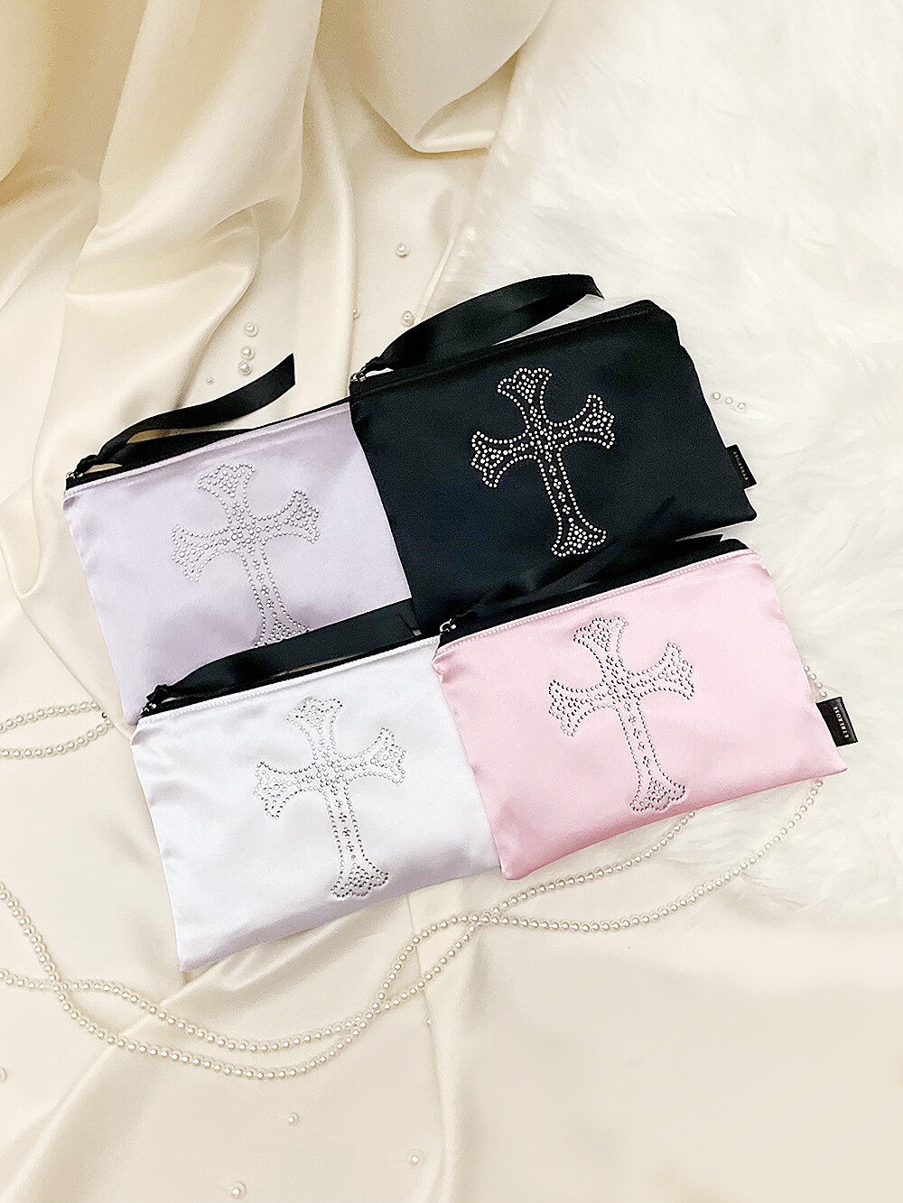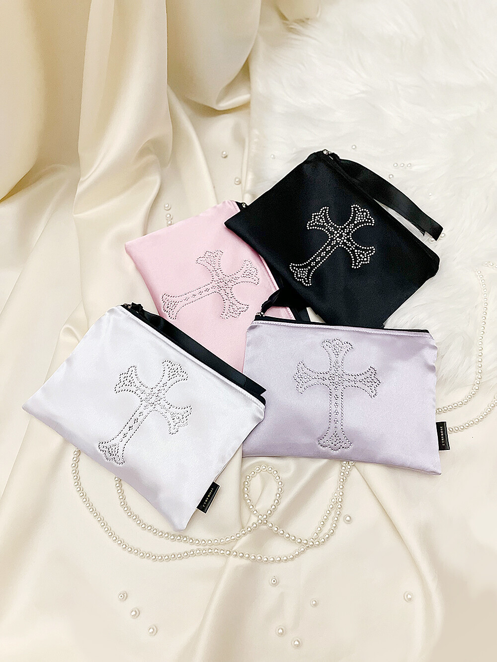 Sparkling Cubic Satin Zip-pouch (M/4color)