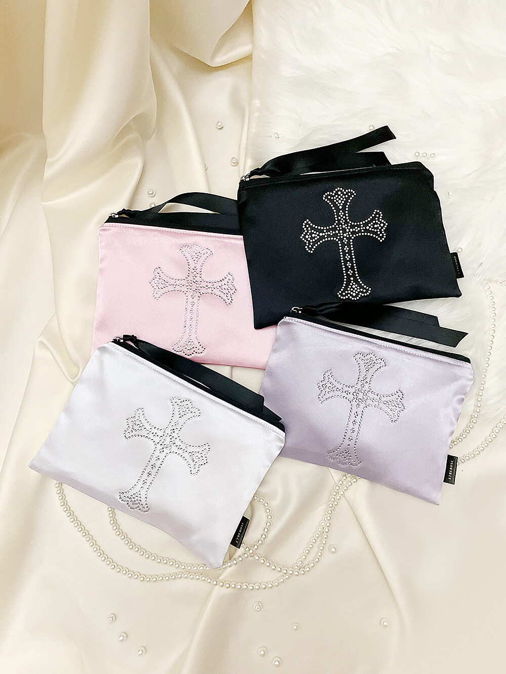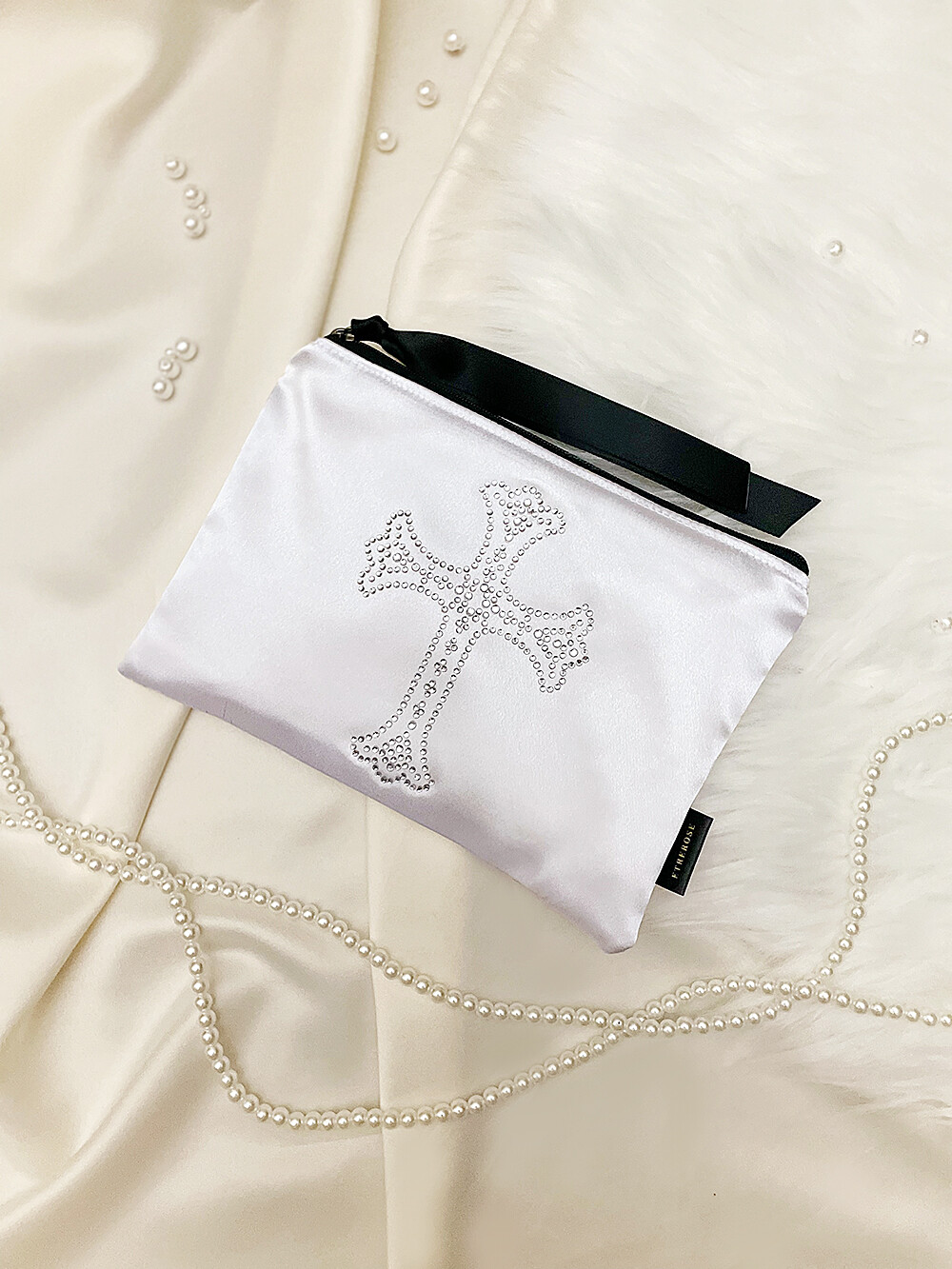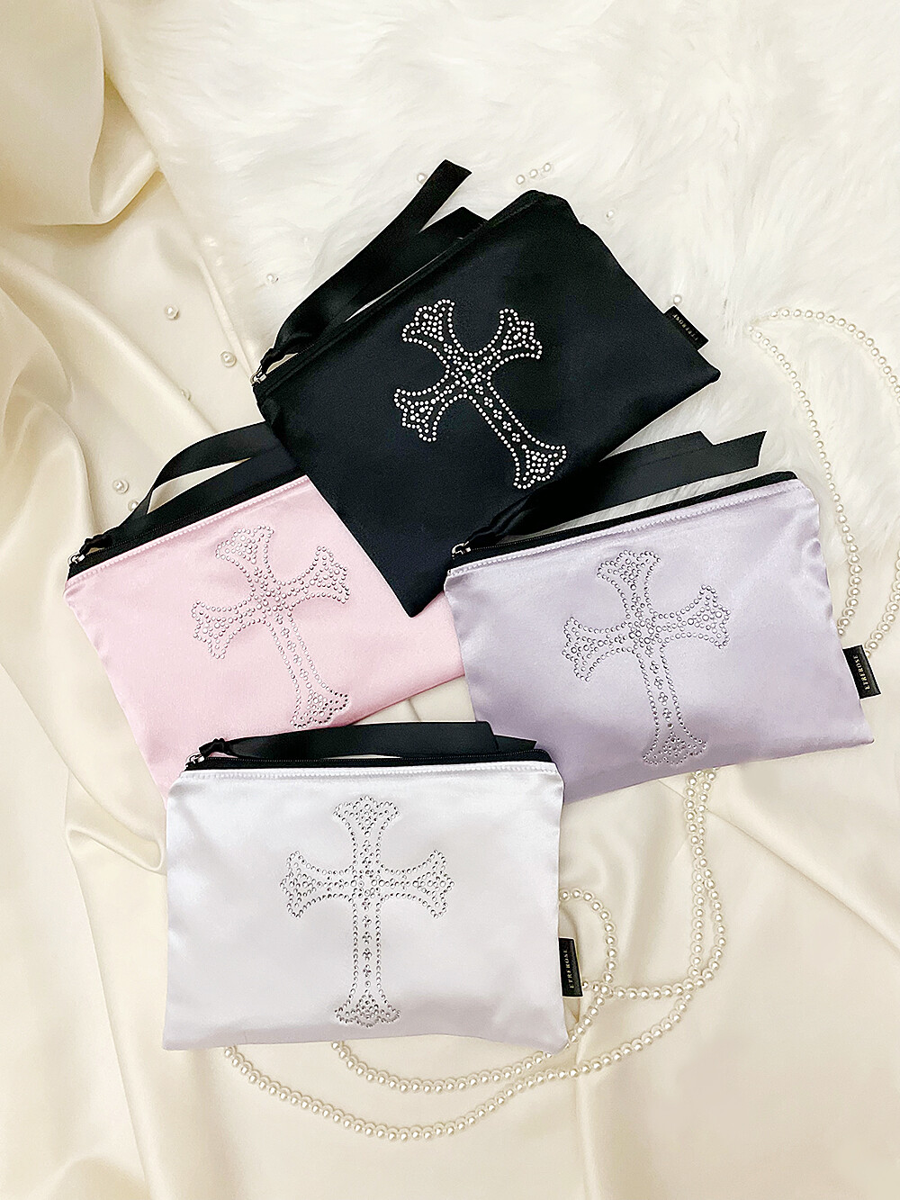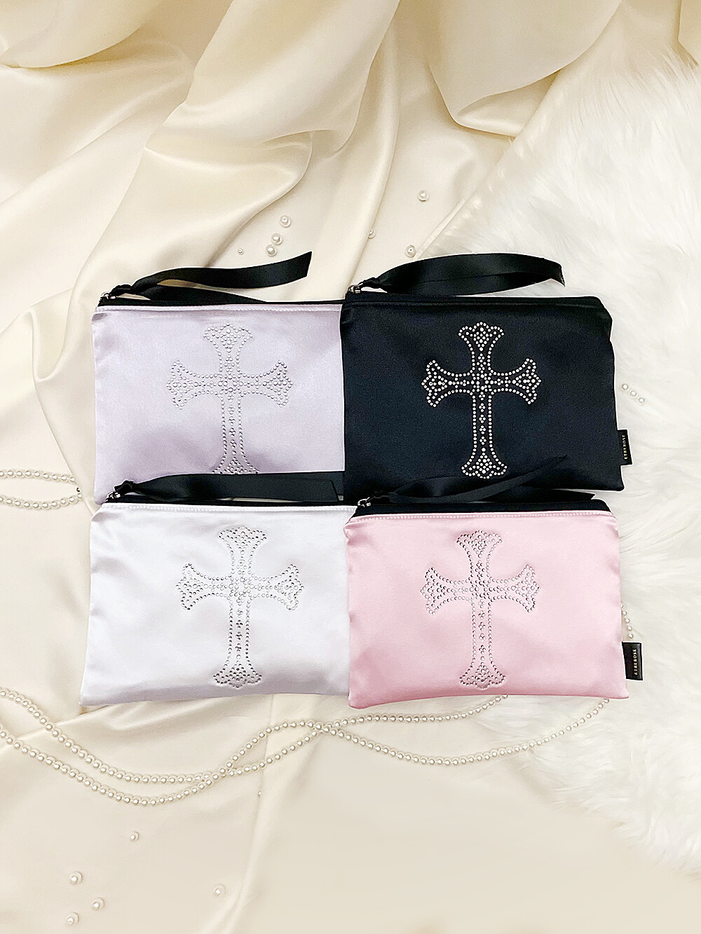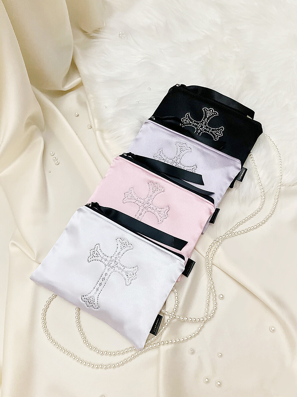 Sparkling Cubic Satin Zip-pouch (M/4color)