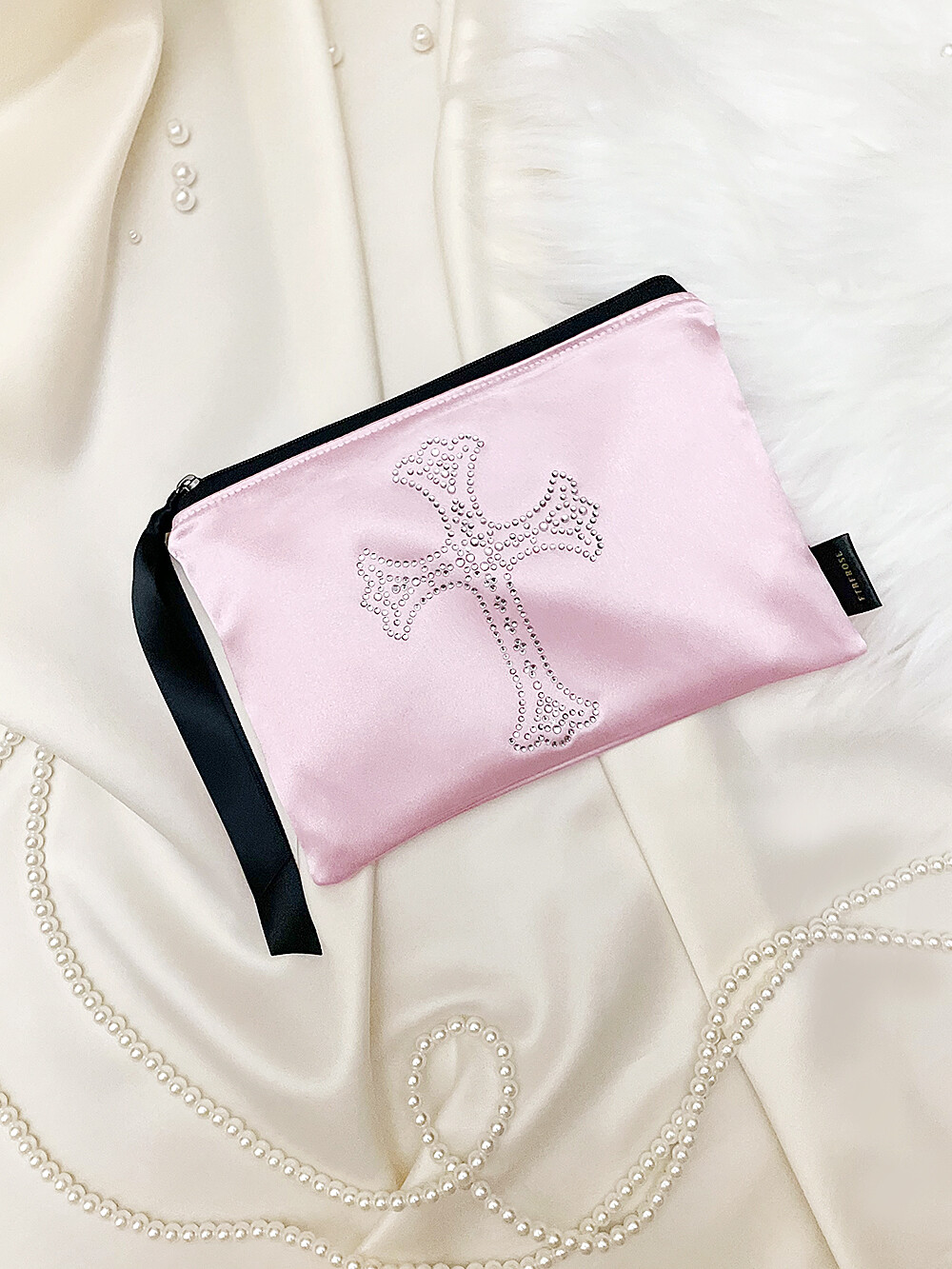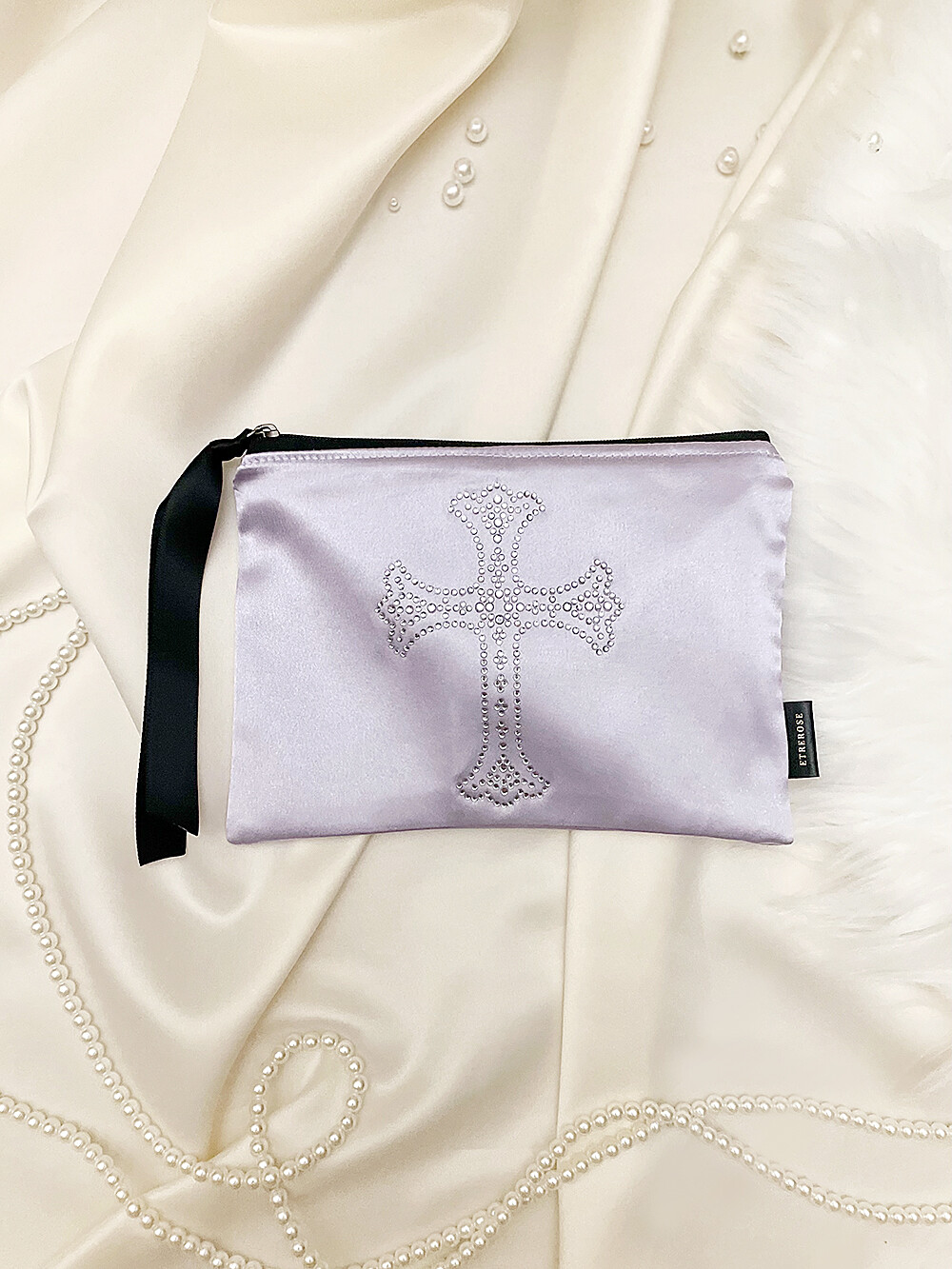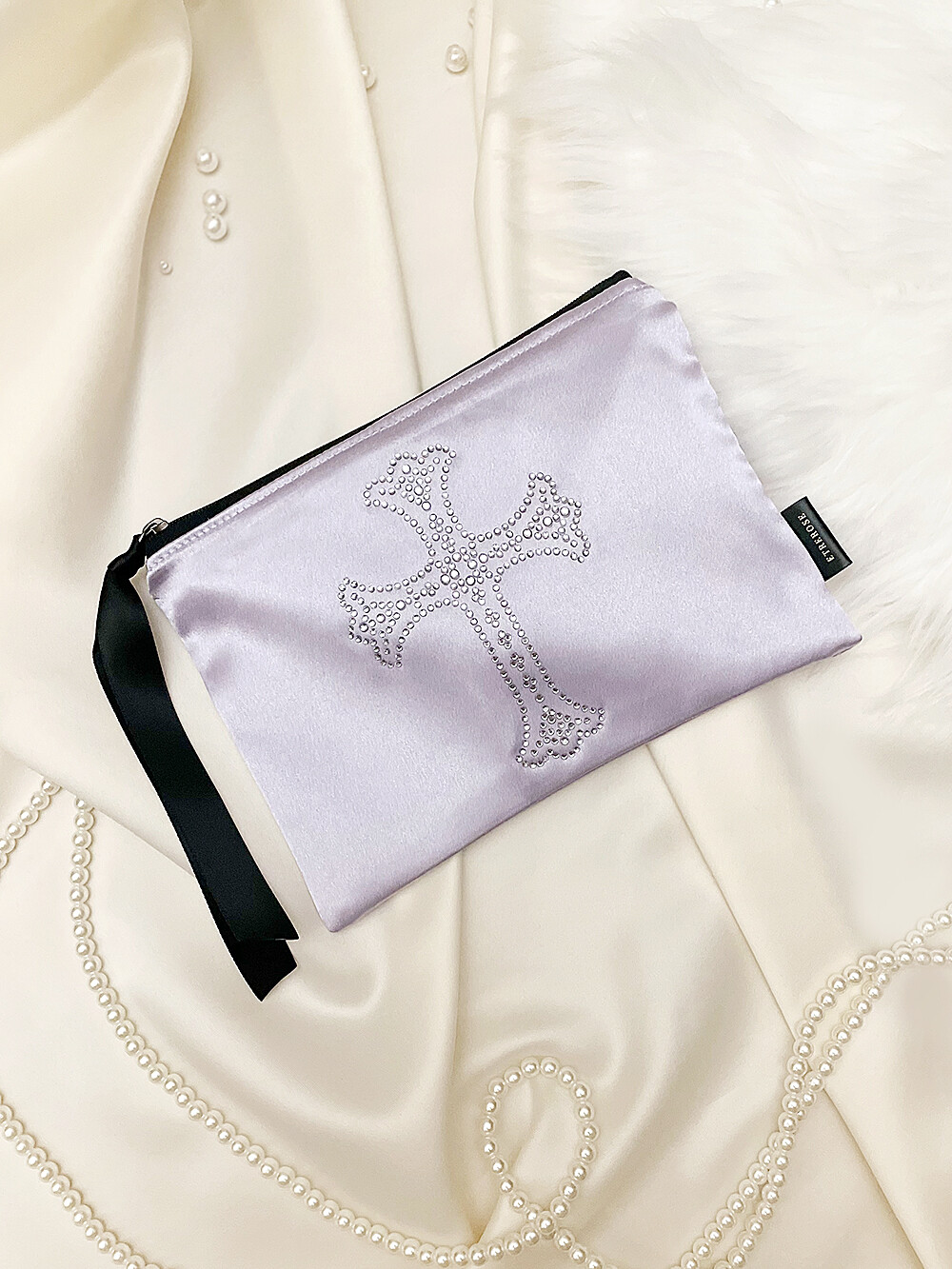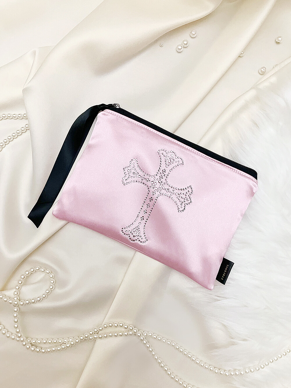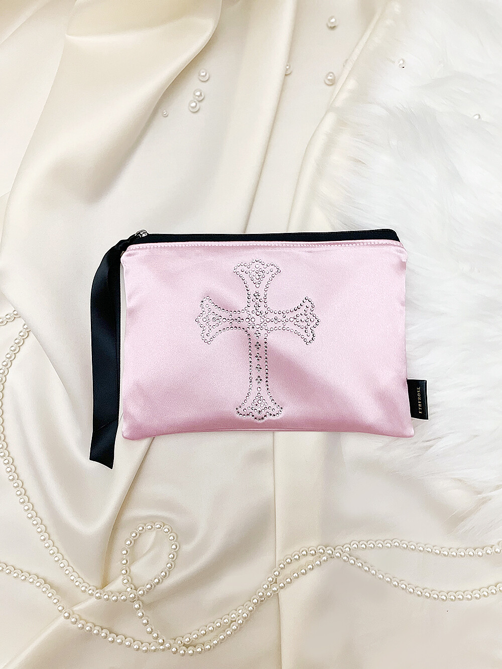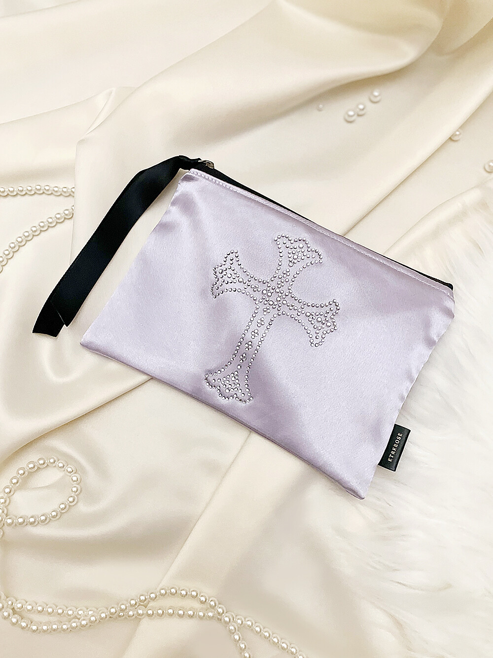 Sparkling Cubic Satin Zip-pouch (M/4color)