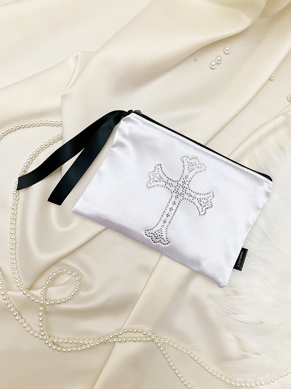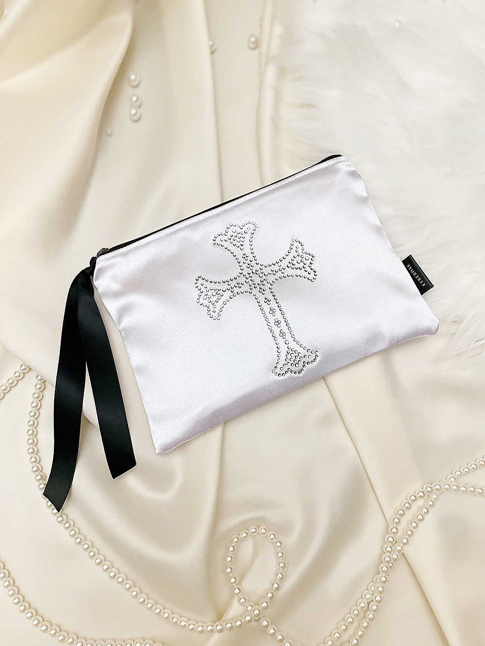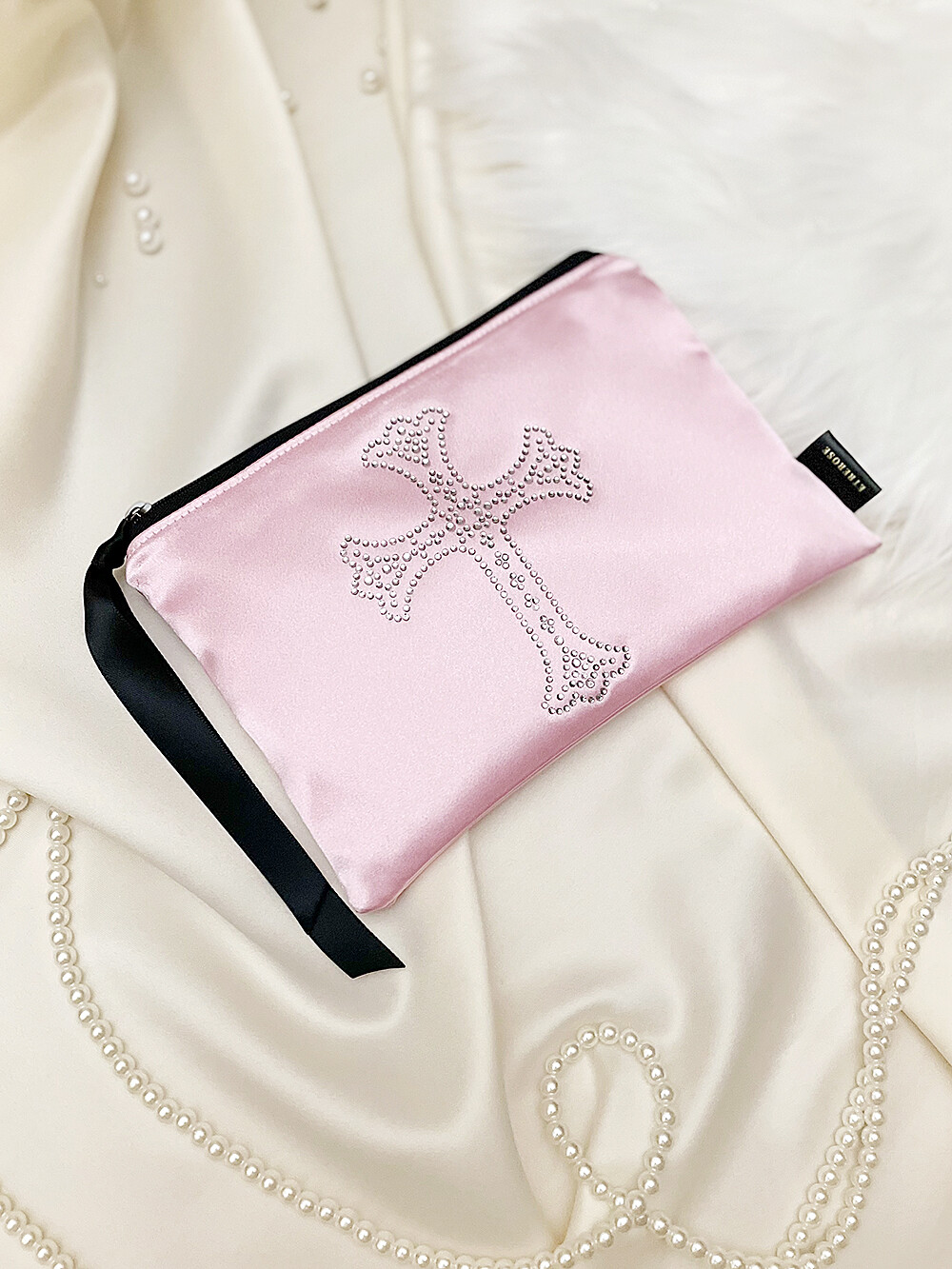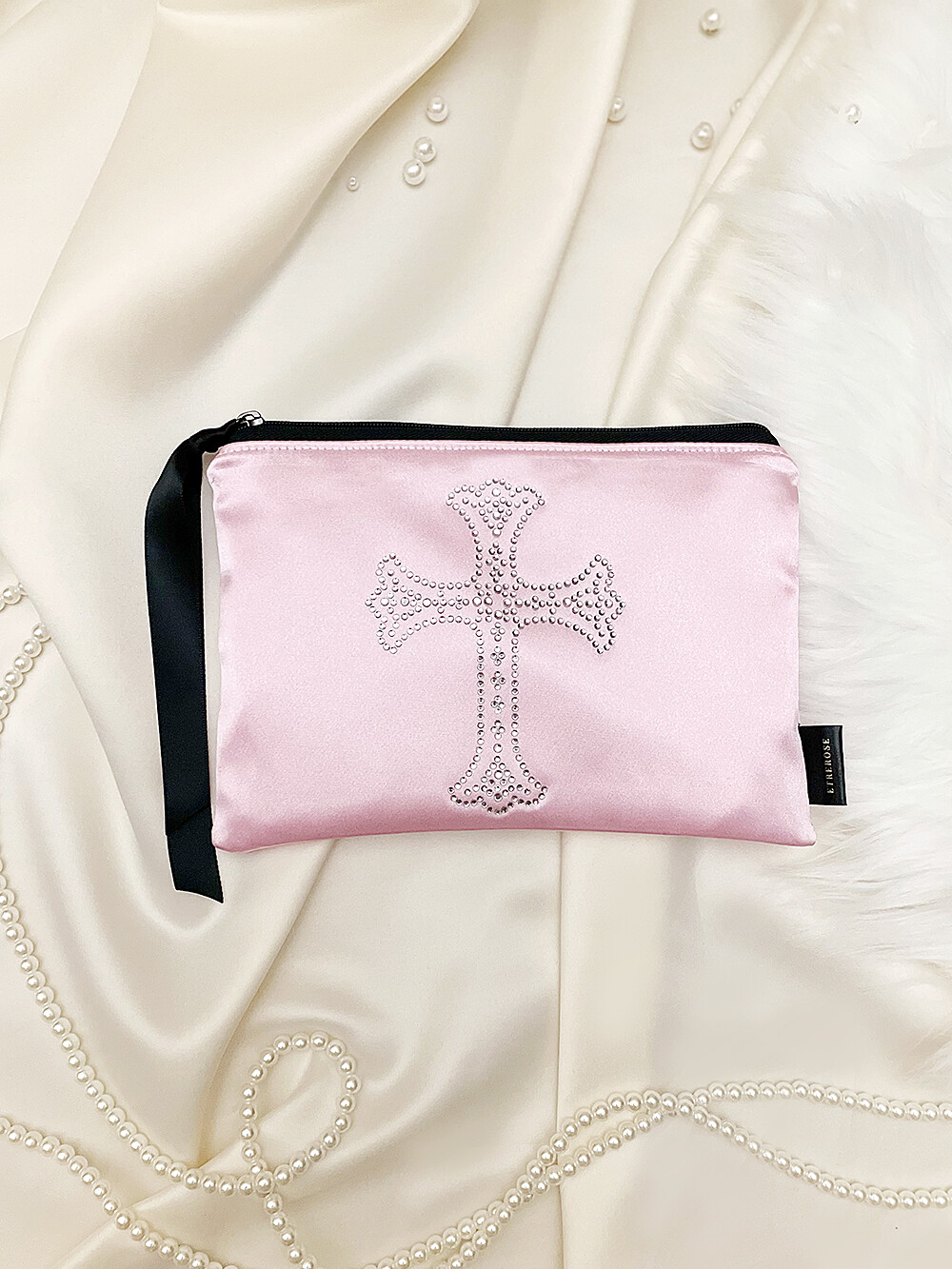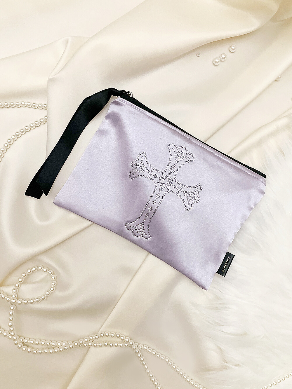 Sparkling Cubic Satin Zip-pouch (M/4color)