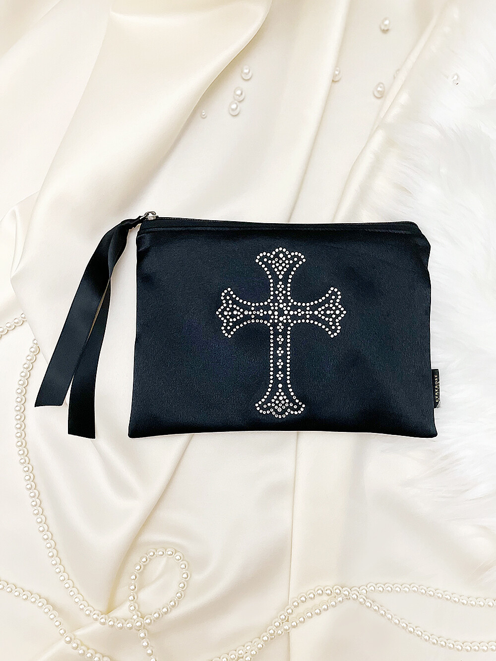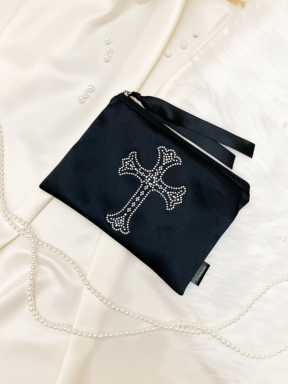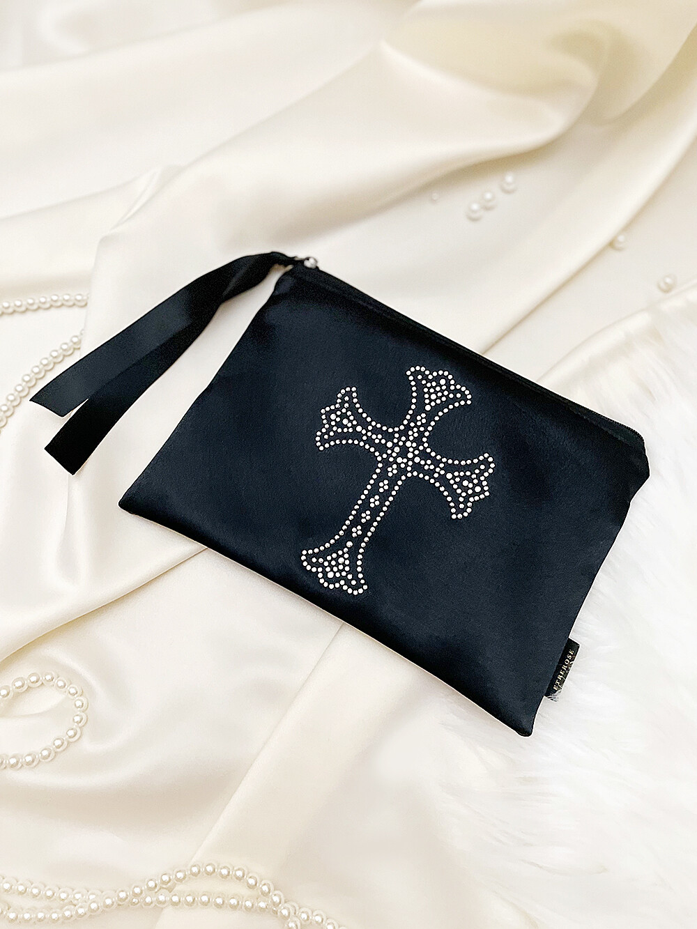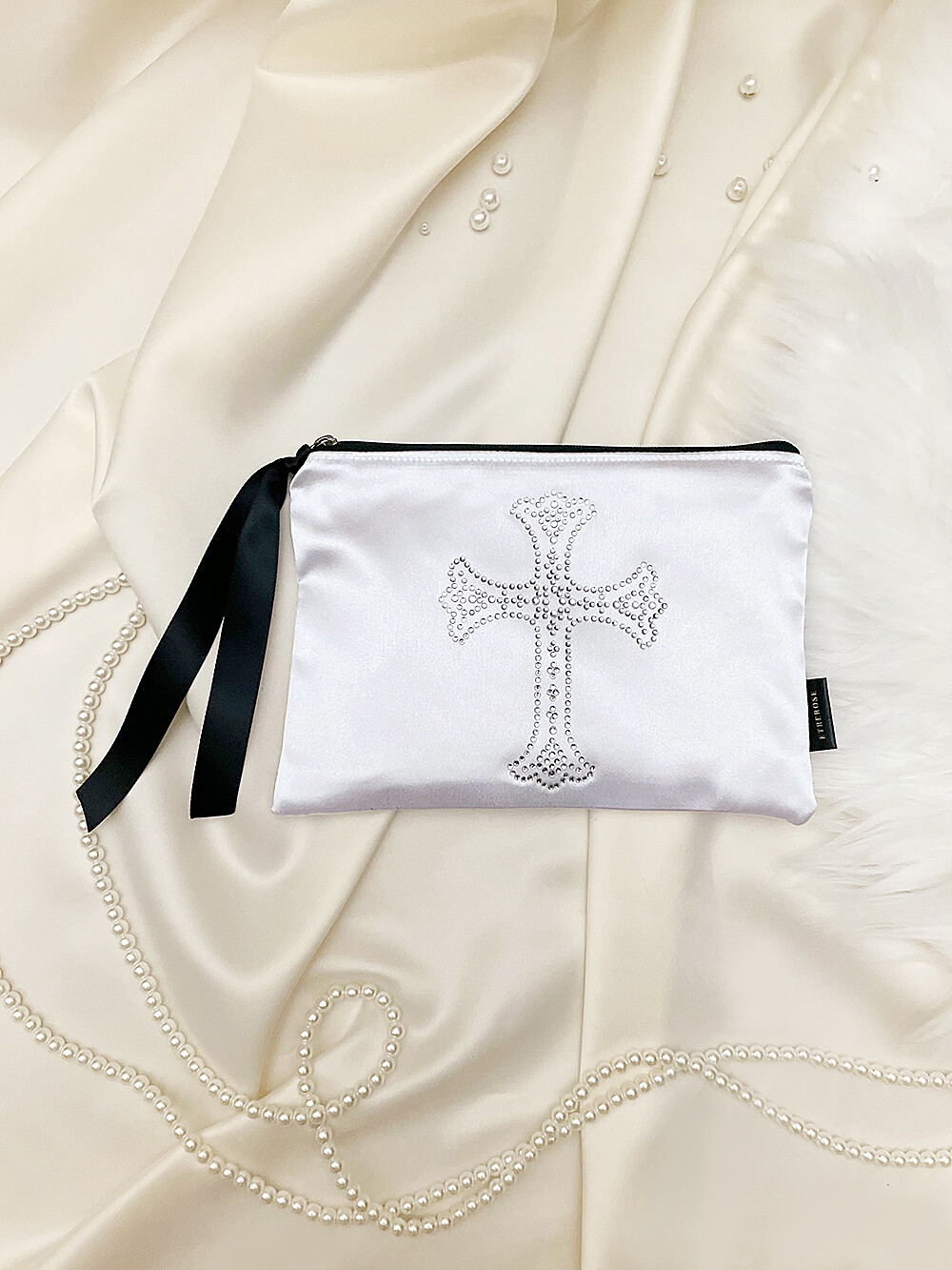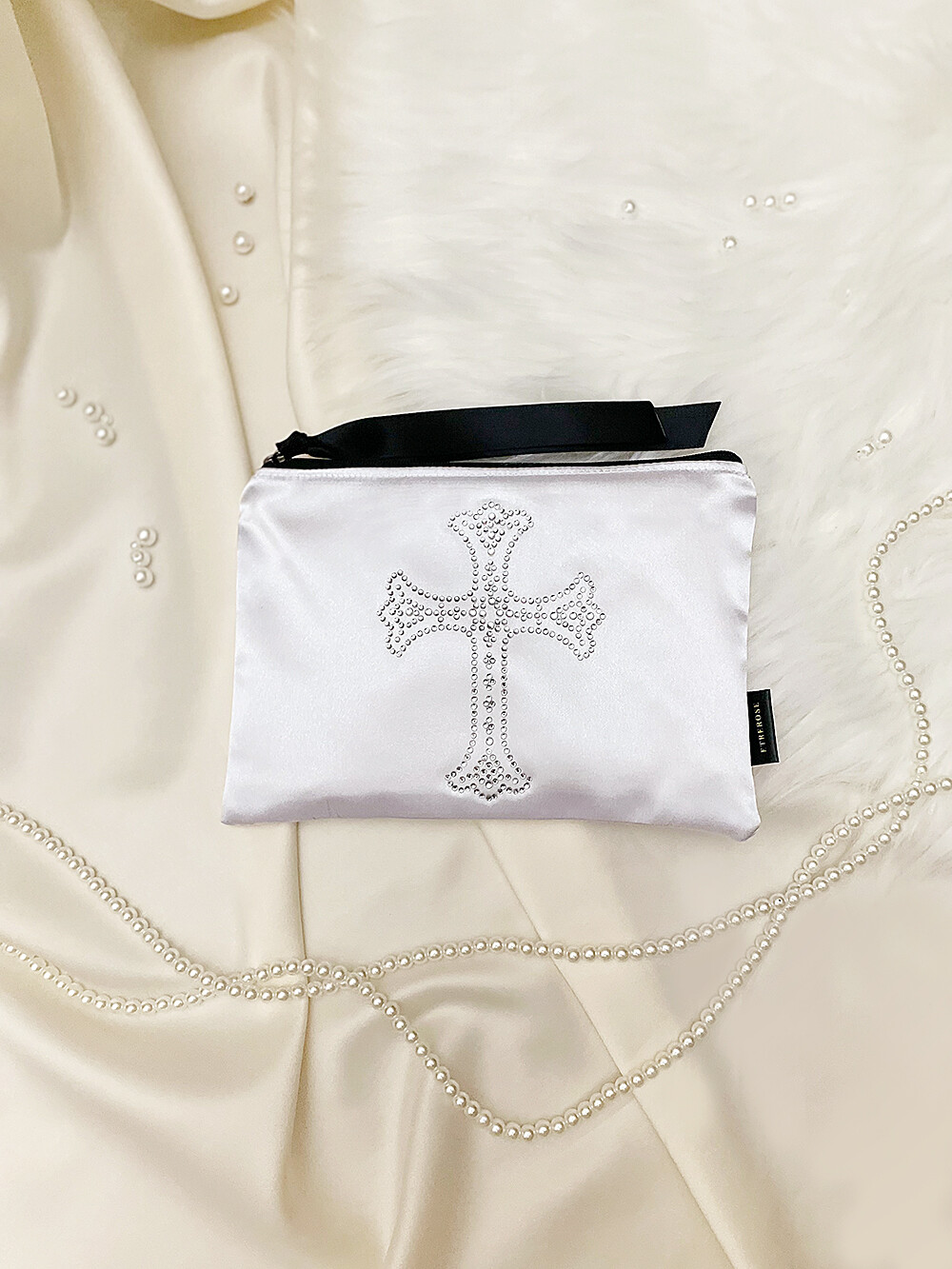 Sparkling Cubic Satin Zip-pouch (M/4color)